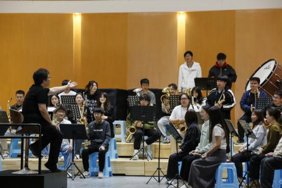 讲座上,老师首先对国内外管乐团建设进行了讲述与展望;接下来他从三个方面讲解与演示了管乐团的建设和运用为祁连管乐团进行《斯拉夫女人的告白曲目的排练与指导;最后,老师为师生们演奏了精彩的上低音号乐曲Set Adrift》,讲座现场反响热烈。