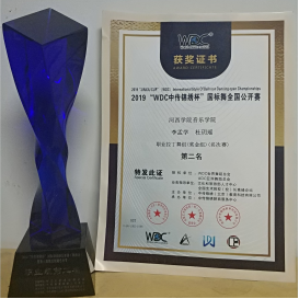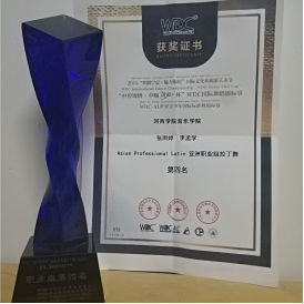2019年11月2日,bevictor伟德官网李孟学同学参加在陕西省举办的“WDC中传锦绣杯国标舞全国公开赛”,经过拉丁舞职业组三轮淘汰赛,李孟学和他的舞伴成功的从32对选手中杀入6强,最终获得职业拉丁组第二名的骄人成绩。